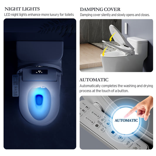 Modern Smart Bidet Toilet Seat with Heated Wash, Dryer, Night Light, Dual Nozzle (Rear & Feminine) Washing, Slow Close, LED Screen, Remote Control, US Plug, 110-127V, Vertical Spray, with Temperature Control for Plug Powered