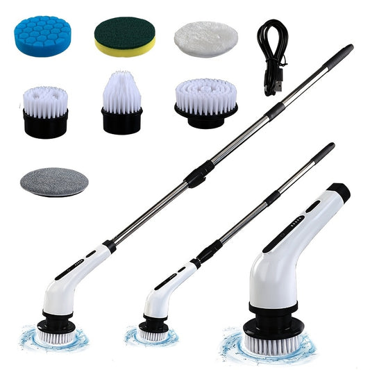 Electric Convenient Rotary Cleaning Brush, Shower Brush Wireless Cleaning Brush With 9 Replaceable Brush Heads, Adjustable Retractable Handle, With 2-speed Electric Cleaning Brush, Suitable For Floor, Bathroom, Tile, Kitchen,